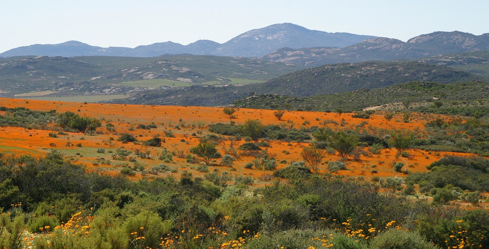 We have been told this is a poor year for blossoms, owing to the enduring drought. Yet from the moment we enter the Namakwa National Park, we are blown away by the sheer amount of color that carpets its undulating meadows. A bright daisy dominates the landscapes and tints everything orange but once we abandon the Subaru to hike the short Skilpad trail, we notice an endless palette of unbelievable colour: pale yellow, gold, pink, purple, red, ochre, burgundy, violet, sparkly white.